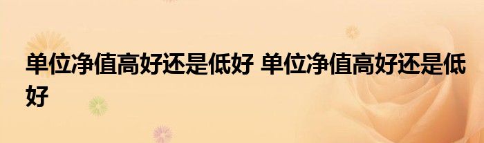 导读 大家好,小基来为大家解答以上的问题。单位净值高好还是低好,单位净值高好还是低好这个很多人还不知道,现在让我们一起来看看吧!