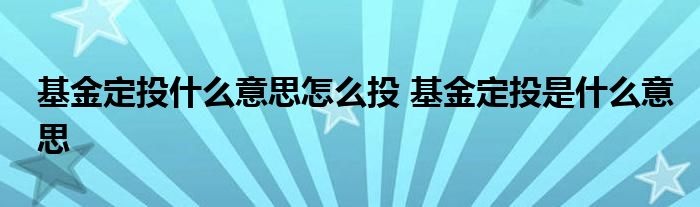 导读 大家好,小基来为大家解答以上的问题。基金定投什么意思怎么投,基金定投是什么意思这个很多人还不知道,现在让我们一起来看看吧!