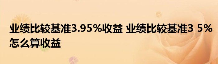导读 大家好,小基来为大家解答以上的问题。业绩比较基准3 95%收益,业绩比较基准3,5%怎么算收益这个很多人还不知道,现在让我们一起来看看吧!