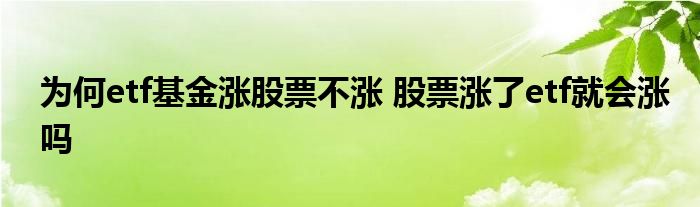 导读 大家好,小基来为大家解答以上的问题。为何etf基金涨股票不涨,股票涨了etf就会涨吗这个很多人还不知道,现在让我们一起来看看吧!