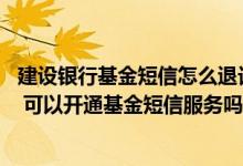 大家好,小基来为大家解答以上的问题。建设银行基金短信怎么退订,建设银行:我不是建行证券客户,可以开通基金短信服务吗这个很多人还不知