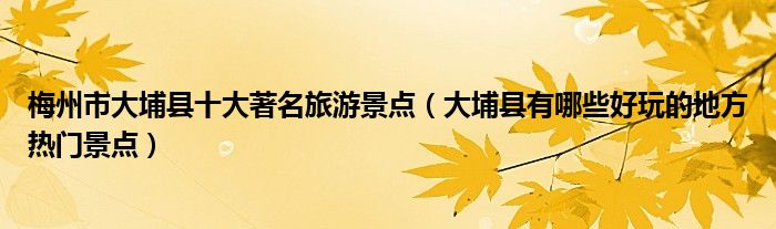 导读 大家好,小源来为大家解答以上问题。梅州市大埔县十大著名旅游景点,大埔县有哪些好玩的地方热门景点很多人还不知道,现在让我们一起来看看