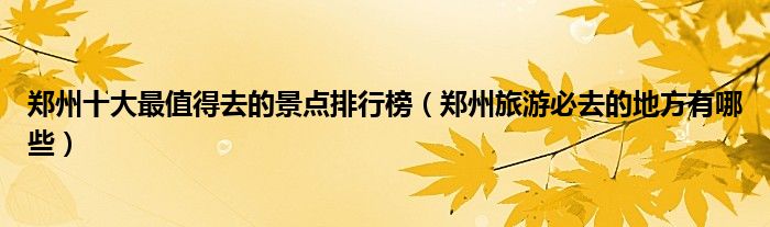导读 大家好,小源来为大家解答以上问题。郑州十大最值得去的景点排行榜,郑州旅游必去的地方有哪些很多人还不知道,现在让我们一起来看看吧!1