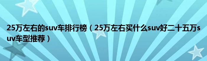 导读 大家好,小源来为大家解答以上问题。25万左右的suv车排行榜,25万左右买什么suv好二十五万suv车型推荐很多人还不知道,现在让我们一起来看