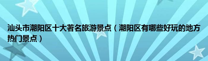 导读 大家好,小源来为大家解答以上问题。汕头市潮阳区十大著名旅游景点,潮阳区有哪些好玩的地方热门景点很多人还不知道,现在让我们一起来看看