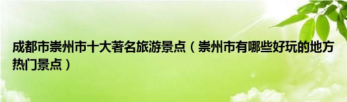 导读 大家好,小源来为大家解答以上问题。成都市崇州市十大著名旅游景点,崇州市有哪些好玩的地方热门景点很多人还不知道,现在让我们一起来看看