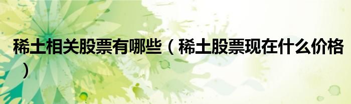 导读 大家好,小号哥来为大家解答以上问题,稀土相关股票有哪些,稀土股票现在什么价格 很多人还不知道,现在让我们一起来看看吧!以下是为您整