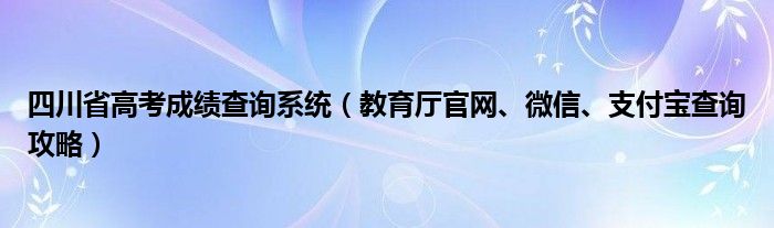 大家好,小号哥来为大家解答以上问题,四川省高考成绩查询系统,教育厅官网、微信、支付宝查询攻略很多人还不知道,现在让我们一起来看看吧!