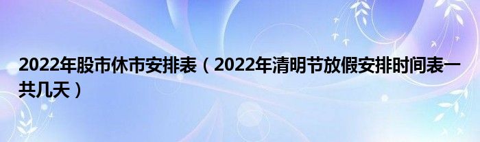 导读 大家好,小号哥来为大家解答以上问题,2022年股市休市安排表,2022年清明节放假安排时间表一共几天很多人还不知道,现在让我们一起来看看吧