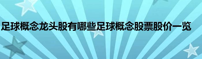 大家好,小号哥来为大家解答以上问题,足球概念龙头股有哪些足球概念股票股价一览很多人还不知道,现在让我们一起来看看吧!