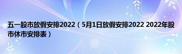 导读 大家好,小号哥来为大家解答以上问题,五一股市放假安排2022,5月1日放假安排2022 2022年股市休市安排表很多人还不知道,现在让我们一起来