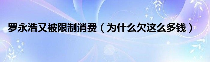 大家好,小号哥来为大家解答以上问题,罗永浩又被限制消费,为什么欠这么多钱很多人还不知道,现在让我们一起来看看吧!