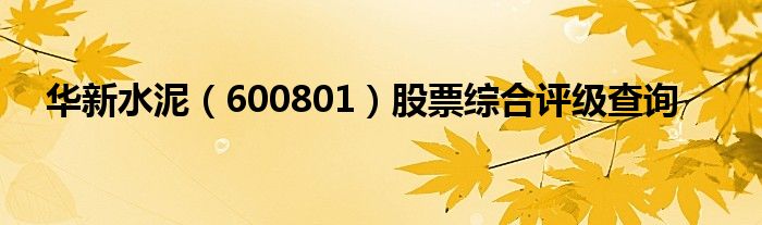大家好,小号哥来为大家解答以上问题,华新水泥,600801股票综合评级查询很多人还不知道,现在让我们一起来看看吧!
