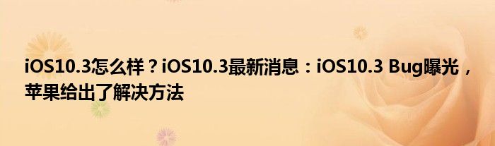 大家好,我是本期栏目编辑小友,现在为大家讲解iOS10.3怎么样?iOS10.3最新消息:iOS10.3 Bug曝光,苹果给出了解决方法问题。