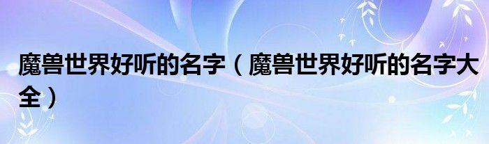 导读 大家好,小相来为大家解答以上问题。魔兽世界好听的名字,魔兽世界好听的名字大全很多人还不知道,现在让我们一起来看看吧!