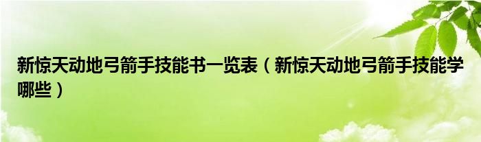导读 大家好,精选小编来为大家解答以上的问题。新惊天动地弓箭手技能书一览表,新惊天动地弓箭手技能学哪些很多人还不知道,现在让我们一起来看