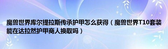 导读 大家好,精选小编来为大家解答以上的问题。魔兽世界库尔提拉斯传承护甲怎么获得,魔兽世界T10套装能在达拉然护甲商人换取吗很多人还不知道