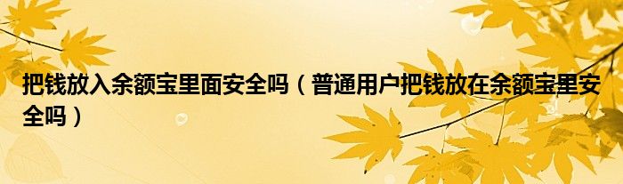 导读 大家好,精选小编来为大家解答以上的问题。把钱放入余额宝里面安全吗,普通用户把钱放在余额宝里安全吗很多人还不知道,现在让我们一起来看