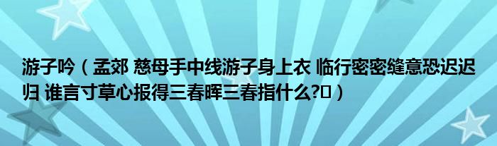 导读 大家好,精选小编来为大家解答以上的问题。游子吟,孟郊 慈母手中线游子身上衣 临行密密缝意恐迟迟归 谁言寸草心报得三春晖三春指什么?