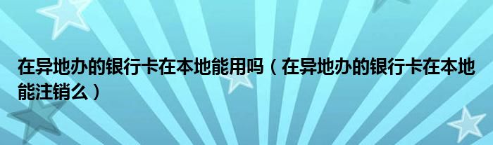 导读 大家好,精选小编来为大家解答以上的问题。在异地办的银行卡在本地能用吗,在异地办的银行卡在本地能注销么很多人还不知道,现在让我们一起
