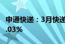 36氪获悉,申通快递公告称,3月快递服务业务收入25 29亿元,同比增长24 03%;单票收入2 56元,同比增长13 78%。