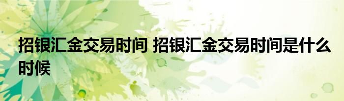 导读 大家好,小理来为大家解答以上的问题。招银汇金交易时间,招银汇金交易时间是什么时候这个很多人还不知道,现在让我们一起来看看吧!