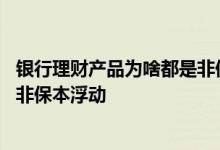 大家好,小理来为大家解答理财的问题。银行理财产品为啥都是非保本浮动,为什么银行理财产品都是非保本浮动这个很多人还不知道,现在让我们一