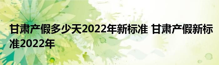 导读 大家好,小社来为大家解答社保的问题。甘肃产假多少天2022年新标准,甘肃产假新标准2022年,这个很多人还不知道,现在让我们一起来看看吧!