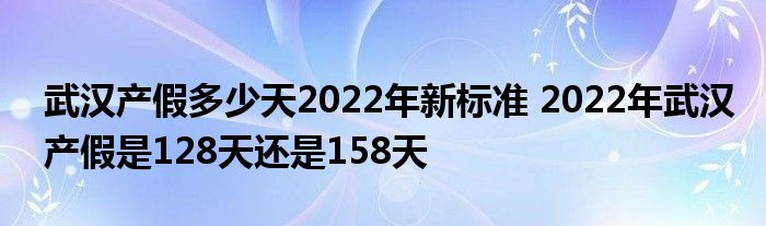 大家好,小社来为大家解答社保的问题。武汉产假多少天2022年新标准,2022年武汉产假是128天还是158天,这个很多人还不知道,现在让我们一起来看看吧!