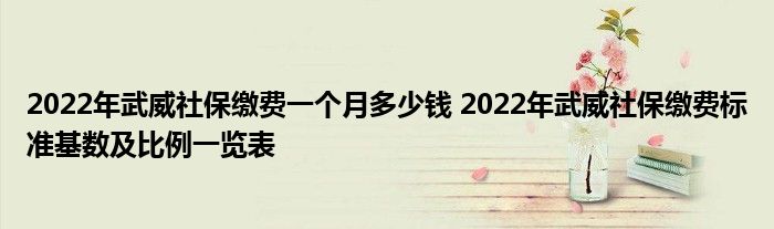 导读 大家好,小社来为大家解答社保的问题。2022年武威社保缴费一个月多少钱,2022年武威社保缴费标准基数及比例一览表,这个很多人还不知道,现在