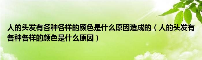 导读 大家好,小齐来为大家解答以上问题。人的头发有各种各样的颜色是什么原因造成的,人的头发有各种各样的颜色是什么原因很多人还不知道,现在