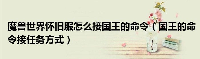 导读 大家好,小相来为大家解答以上问题。魔兽世界怀旧服怎么接国王的命令,国王的命令接任务方式很多人还不知道,现在让我们一起来看看吧!