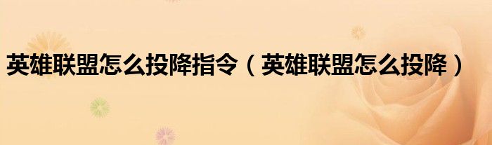 大家好,精选小编来为大家解答以上问题。英雄联盟怎么投降指令,英雄联盟怎么投降很多人还不知道,现在让我们一起来看看吧!