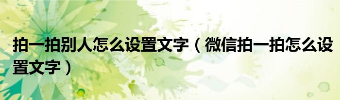 导读 大家好,小相来为大家解答以上问题。拍一拍别人怎么设置文字,微信拍一拍怎么设置文字很多人还不知道,现在让我们一起来看看吧!