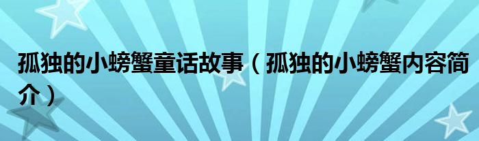 大家好,小齐来为大家解答以上问题。孤独的小螃蟹童话故事,孤独的小螃蟹内容简介很多人还不知道,现在让我们一起来看看吧!