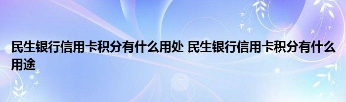 导读 大家好,小元来为大家解答问题。民生银行信用卡积分有什么用处,民生银行信用卡积分有什么用途这个很多人还不知道,现在让我们一起来了解下