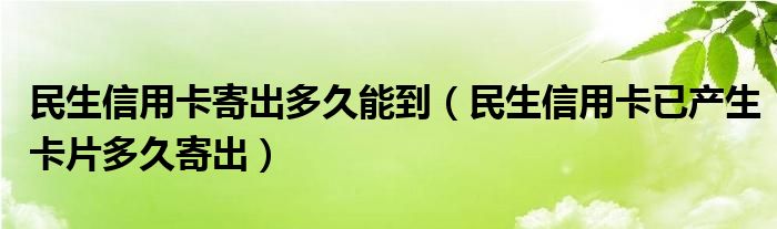 导读 大家好,小元来为大家解答问题。民生信用卡寄出多久能到,民生信用卡已产生卡片多久寄出这个很多人还不知道,现在让我们一起来了解下吧!