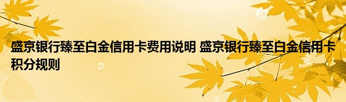 导读 大家好,小元来为大家解答问题。盛京银行臻至白金信用卡费用说明,盛京银行臻至白金信用卡积分规则这个很多人还不知道,现在让我们一起来看