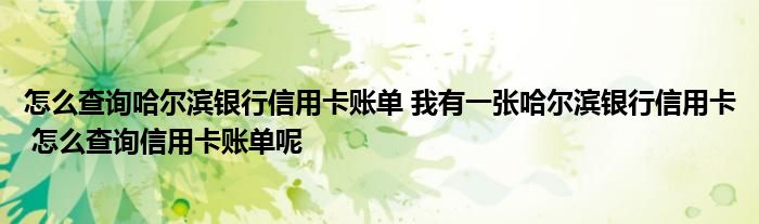 导读 大家好,小元来为大家解答问题。怎么查询哈尔滨银行信用卡账单,我有一张哈尔滨银行信用卡,怎么查询信用卡账单呢这个很多人还不知道,现在