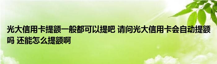 导读 大家好,小元来为大家解答问题。光大信用卡提额一般都可以提吧,请问光大信用卡会自动提额吗,还能怎么提额啊这个很多人还不知道,现在让我