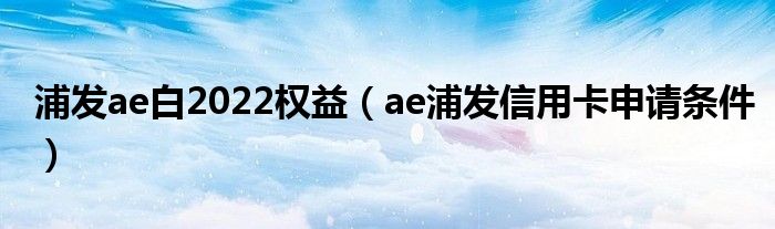 大家好,小元来为大家解答问题。浦发ae白2022权益,ae浦发信用卡申请条件这个很多人还不知道,现在让我们一起来了解下吧!