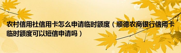 大家好,小元来为大家解答问题。农村信用社信用卡怎么申请临时额度,顺德农商银行信用卡临时额度可以短信申请吗这个很多人还不知道,现在让我们一起来了解下吧!