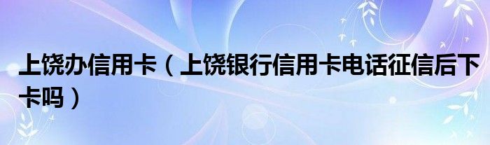 导读 大家好,小元来为大家解答问题。上饶办信用卡,上饶银行信用卡电话征信后下卡吗这个很多人还不知道,现在让我们一起来了解下吧!