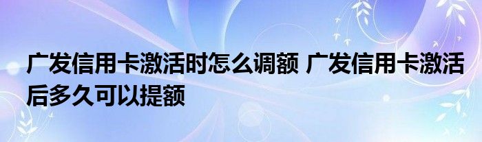 导读 大家好,小元来为大家解答问题。广发信用卡激活时怎么调额,广发信用卡激活后多久可以提额这个很多人还不知道,现在让我们一起来了解下吧!