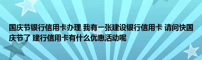 大家好,小元来为大家解答问题。国庆节银行信用卡办理,我有一张建设银行信用卡,请问快国庆节了,建行信用卡有什么优惠活动呢这个很多人还不知道,现在让我们一起来了解下吧!