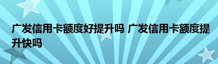 大家好,小元来为大家解答问题。广发信用卡额度好提升吗,广发信用卡额度提升快吗这个很多人还不知道,现在让我们一起来了解下吧!