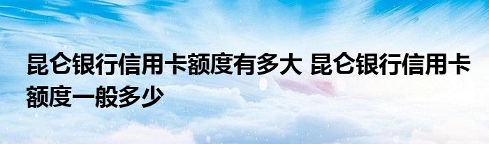 导读 大家好,小元来为大家解答问题。昆仑银行信用卡额度有多大,昆仑银行信用卡额度一般多少这个很多人还不知道,现在让我们一起来了解下吧!