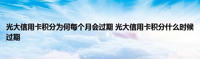 导读 大家好,小元来为大家解答问题。光大信用卡积分为何每个月会过期,光大信用卡积分什么时候过期这个很多人还不知道,现在让我们一起来了解下
