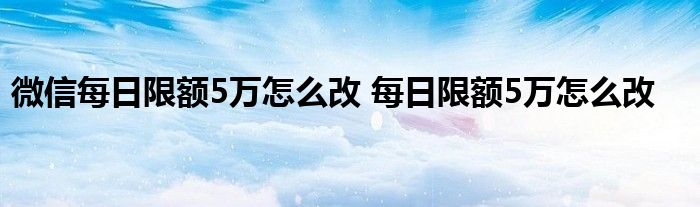 导读 大家好,小元来为大家解答问题。微信每日限额5万怎么改,每日限额5万怎么改这个很多人还不知道,现在让我们一起来了解下吧!