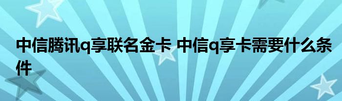 导读 大家好,小元来为大家解答问题。中信腾讯q享联名金卡,中信q享卡需要什么条件这个很多人还不知道,现在让我们一起来了解下吧!